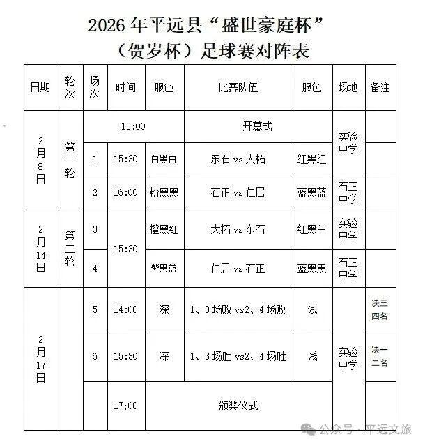 6.本篇文章留言区仅供预测2月8日比赛比分(即东石VS大柘、石正VS仁居),2月14日、2月17日比赛比分预测敬请关注后续“平远文旅”公众号更新文章。
